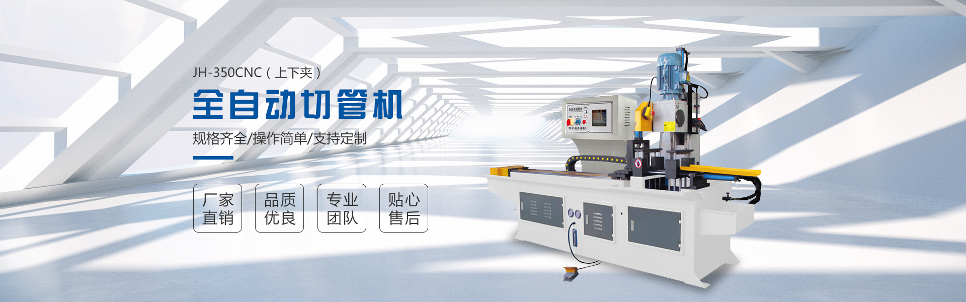 我公司具備雄厚的設計研發能力,先后研制開發了CNC數控彎管機,CNC數控管端成型機,CNC數控金屬圓鋸機,單頭/雙頭倒角機,CNC數控磨齒機等自動化管材加工機械及生產線。為航空航天、重工工程機械、核能核電、風能熱電、造船游艇、汽車零部件、機動車車架、空調制冷、體育健身器材、鋼管家具、旅游休閑用品、水暖衛浴、裝飾用材等行業的金屬管類制品的加工提供了成套,完美的自動化設備。公司可根據客戶需求設計,制造特殊規格的無人智能自動化機型以及各種非標機械設備。